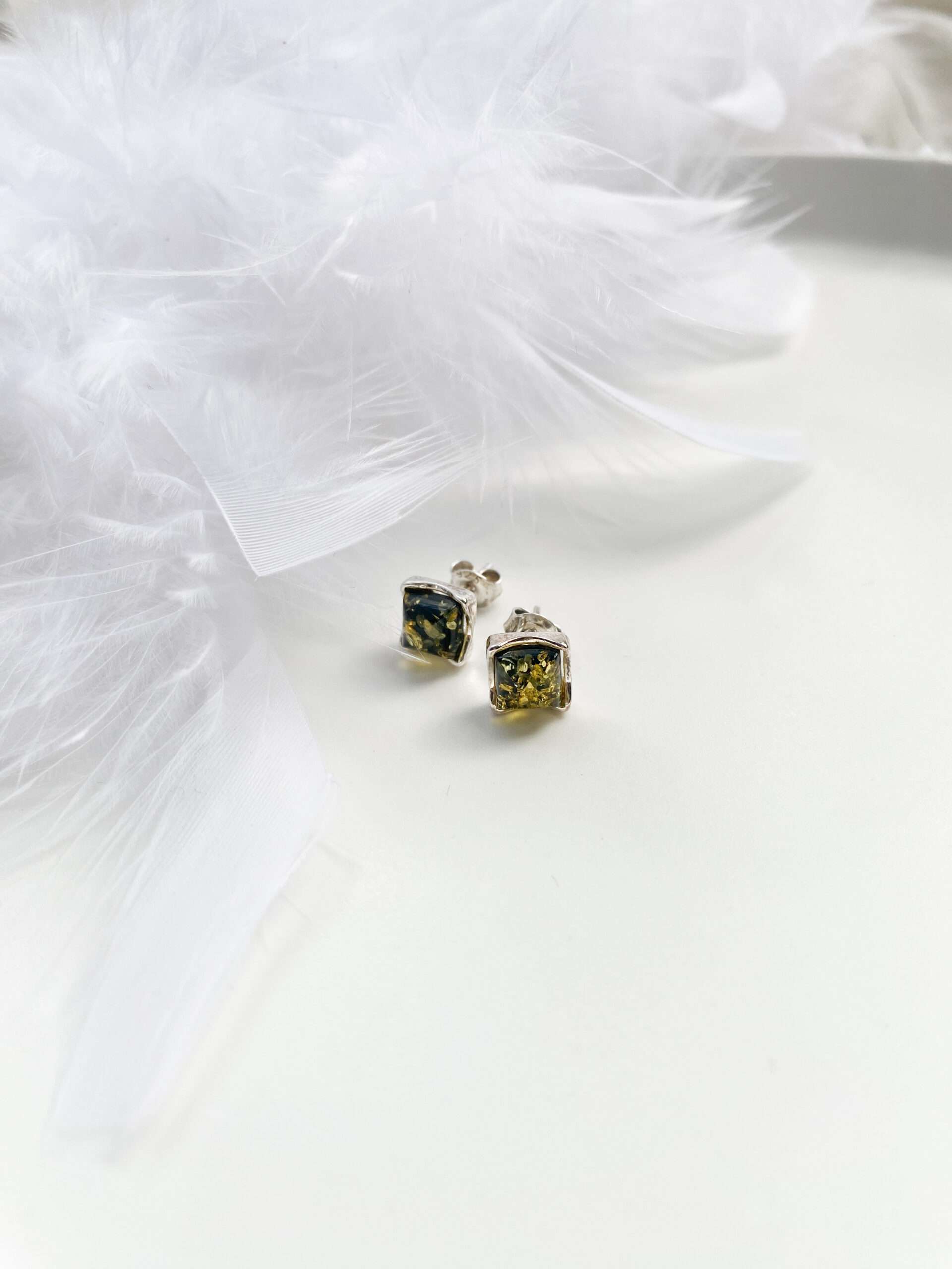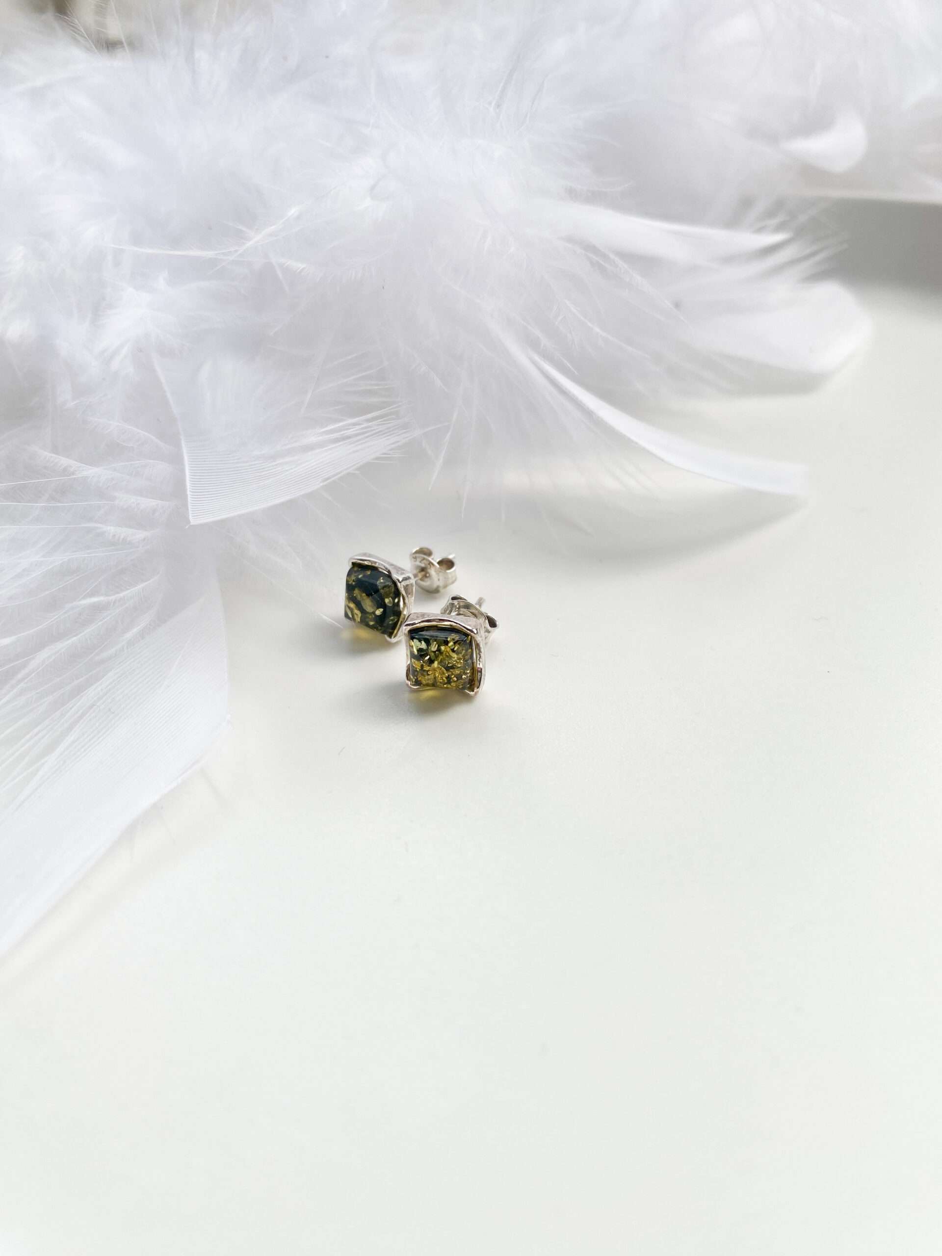 Kolczyki srebrne z bursztynem zielonym Classy
