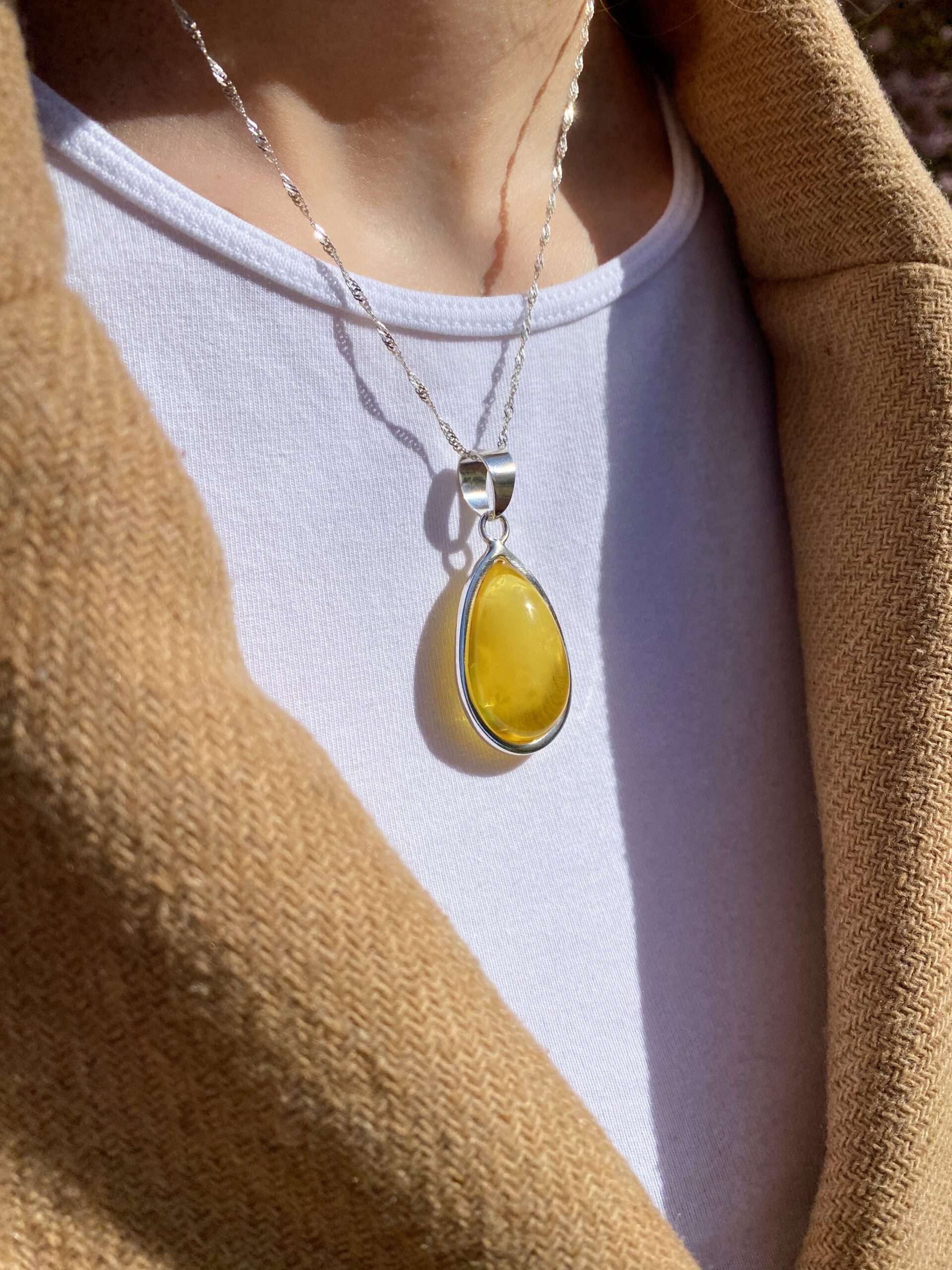 Wisior srebrny z bursztynem mleczno-cytrynowym