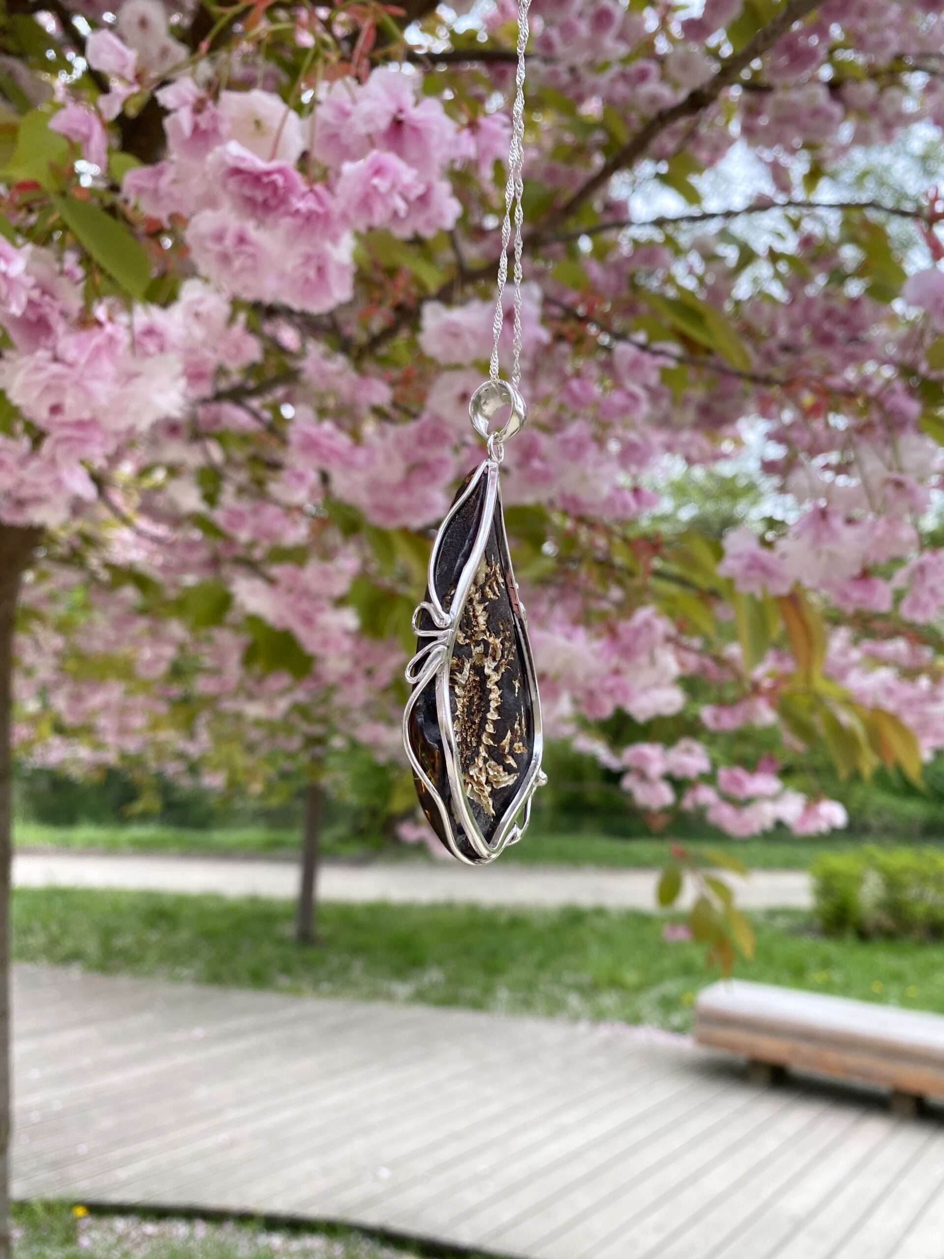 Odkryj subtelne piękno naszego srebrnego wisiorka z wiśniowym bursztynem, zdobionego ręcznie grawerowanymi kwiatami. Każdy detal tego wyjątkowego wisiorka został wykonany z pasją i precyzją, czyniąc go niepowtarzalnym dziełem sztuki. Ciepła barwa wiśniowego bursztynu w połączeniu z delikatnym kwiatowym wzorem tworzy pełen uroku dodatek.