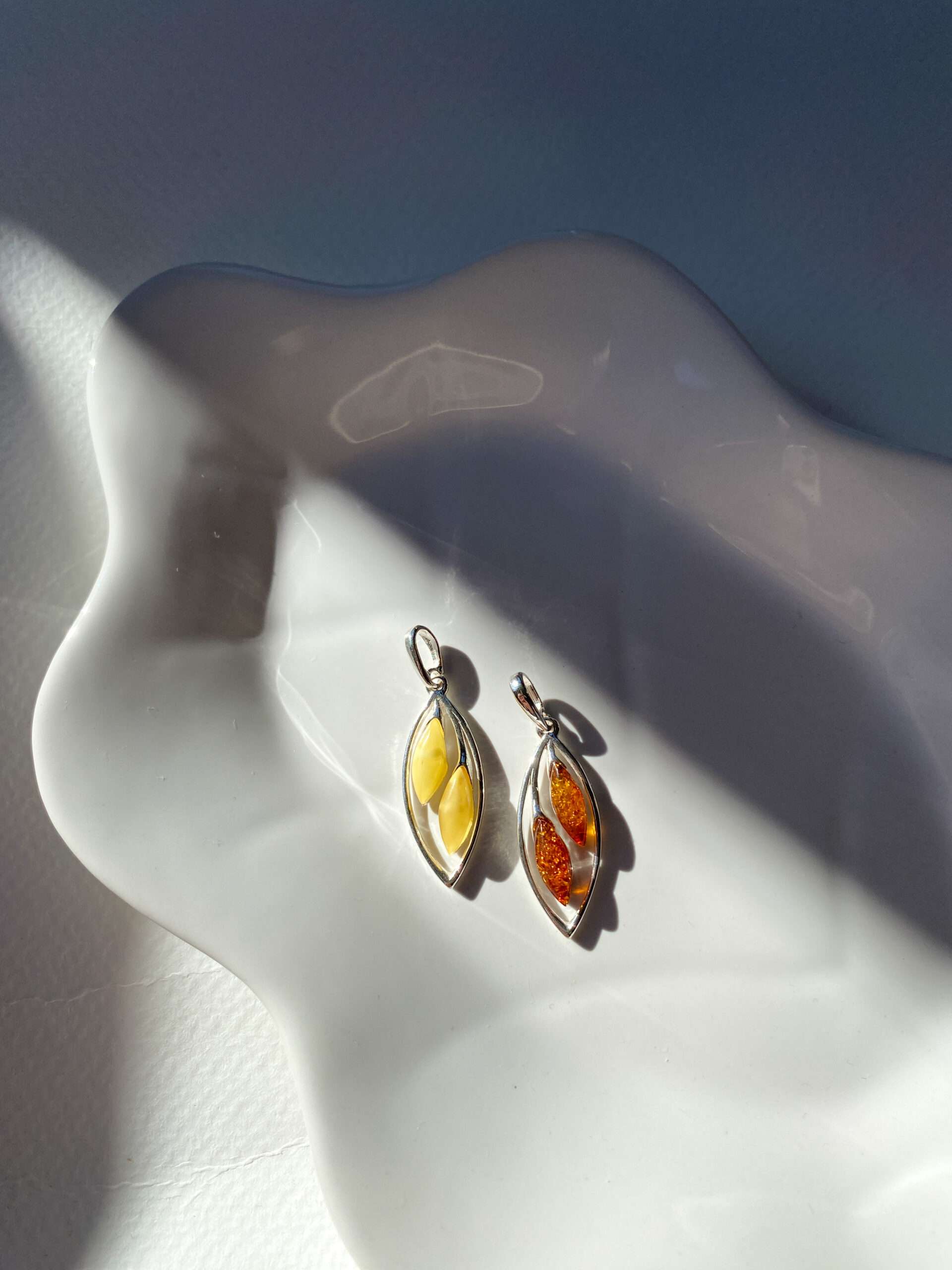 Elegancki wisiorek wykonany z wysokiej jakości srebra próby 925, zdobiony naturalnymi bursztynami. Bursztyny o ciepłym odcieniu został osadzony w gładkich, oprawach, które podkreślają ich naturalne piękno. Idealny zarówno na co dzień, jak i na specjalne okazje.
