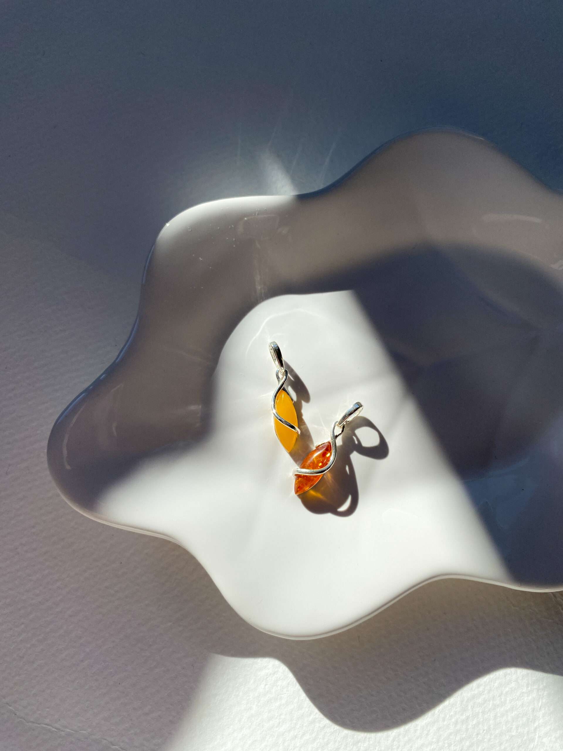 Elegancki wisiorek wykonany z wysokiej jakości srebra próby 925, zdobiony naturalnymi bursztynami. Bursztyny o ciepłym odcieniu został osadzony w gładkich, oprawach, które podkreślają ich naturalne piękno. Idealny zarówno na co dzień, jak i na specjalne okazje.