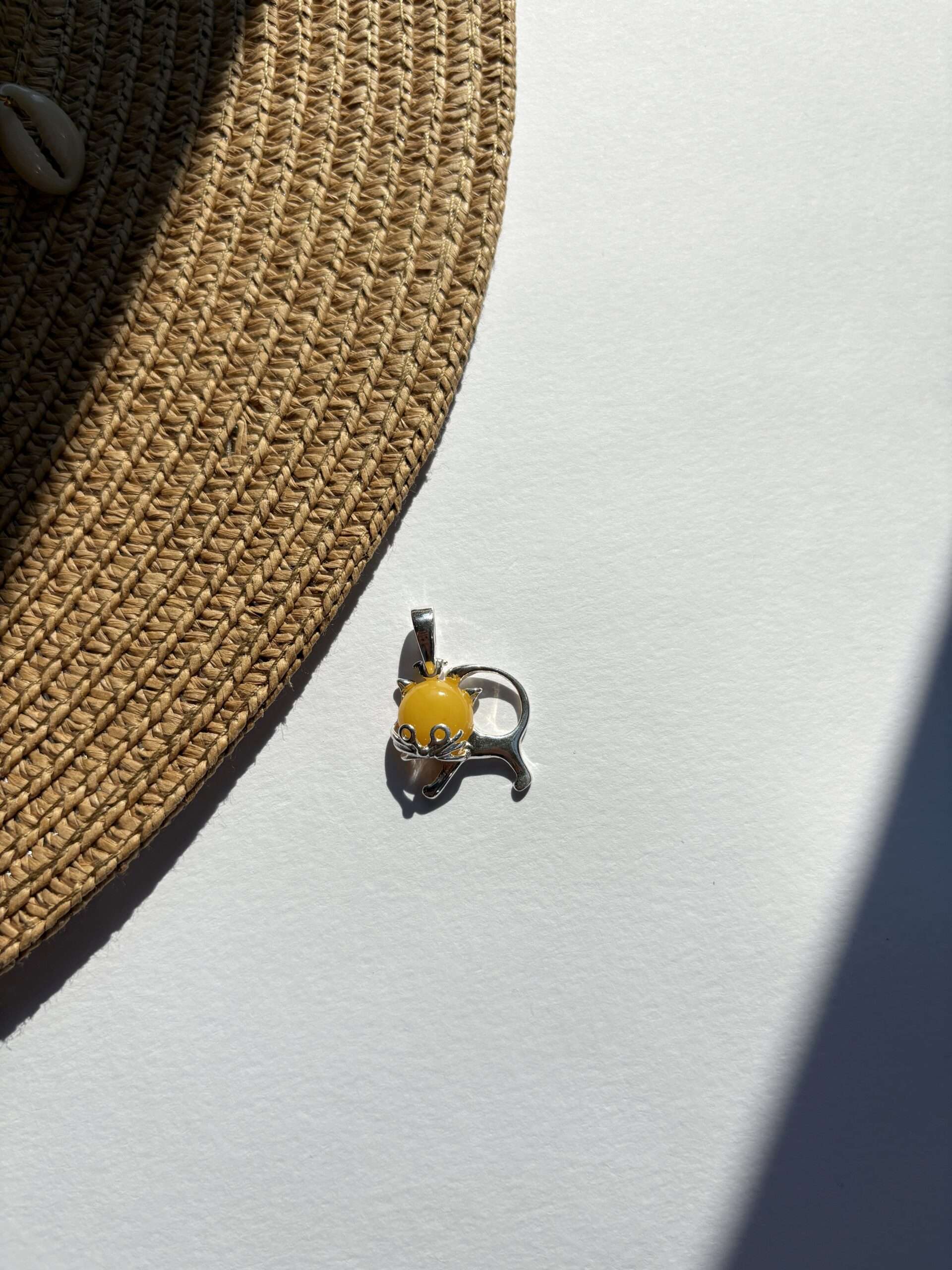 Wisiorek srebrny z bursztynem Kotek