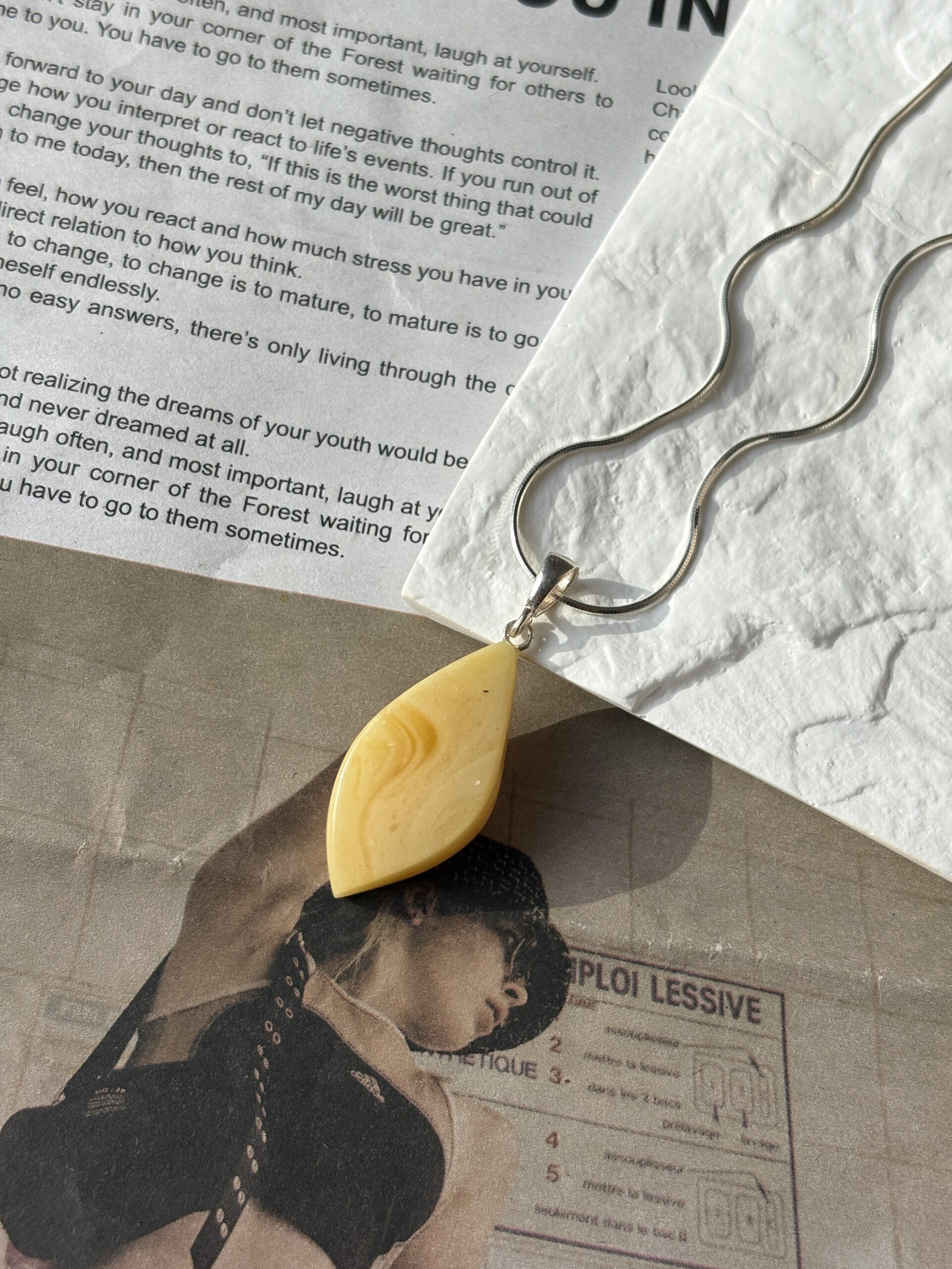 To najszlachetniejsza odmiana bałtyckiego złota – bursztyn mleczny, który nie potrzebuje słońca, by świecić własnym blaskiem. Każda smuga na jego powierzchni jest niepowtarzalna jak linia papilarna. Jest gładki, przyjemny w dotyku i niesamowicie ciepły wizualnie. Idealny towarzysz dla Twojej ulubionej sukienki i Twojej pewności siebie.