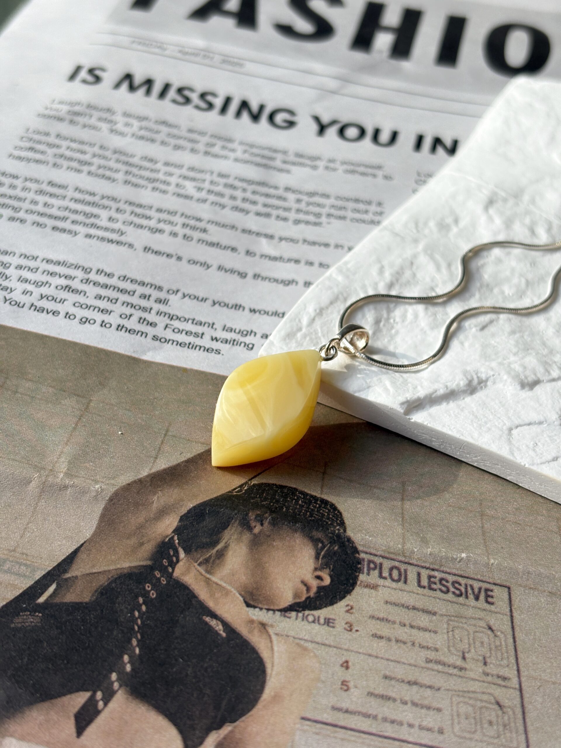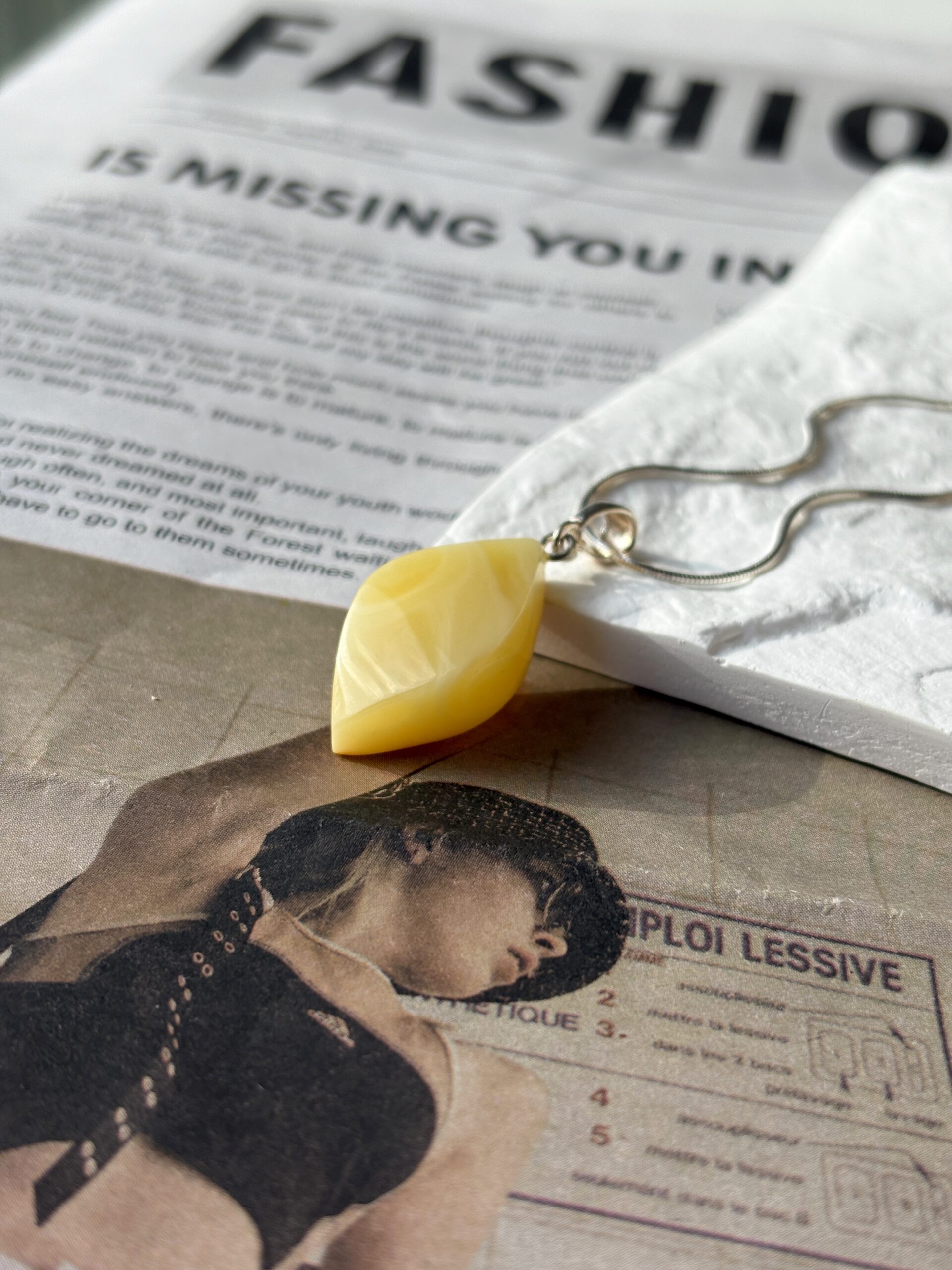 To najszlachetniejsza odmiana bałtyckiego złota – bursztyn mleczny, który nie potrzebuje słońca, by świecić własnym blaskiem. Każda smuga na jego powierzchni jest niepowtarzalna jak linia papilarna. Jest gładki, przyjemny w dotyku i niesamowicie ciepły wizualnie. Idealny towarzysz dla Twojej ulubionej sukienki i Twojej pewności siebie.