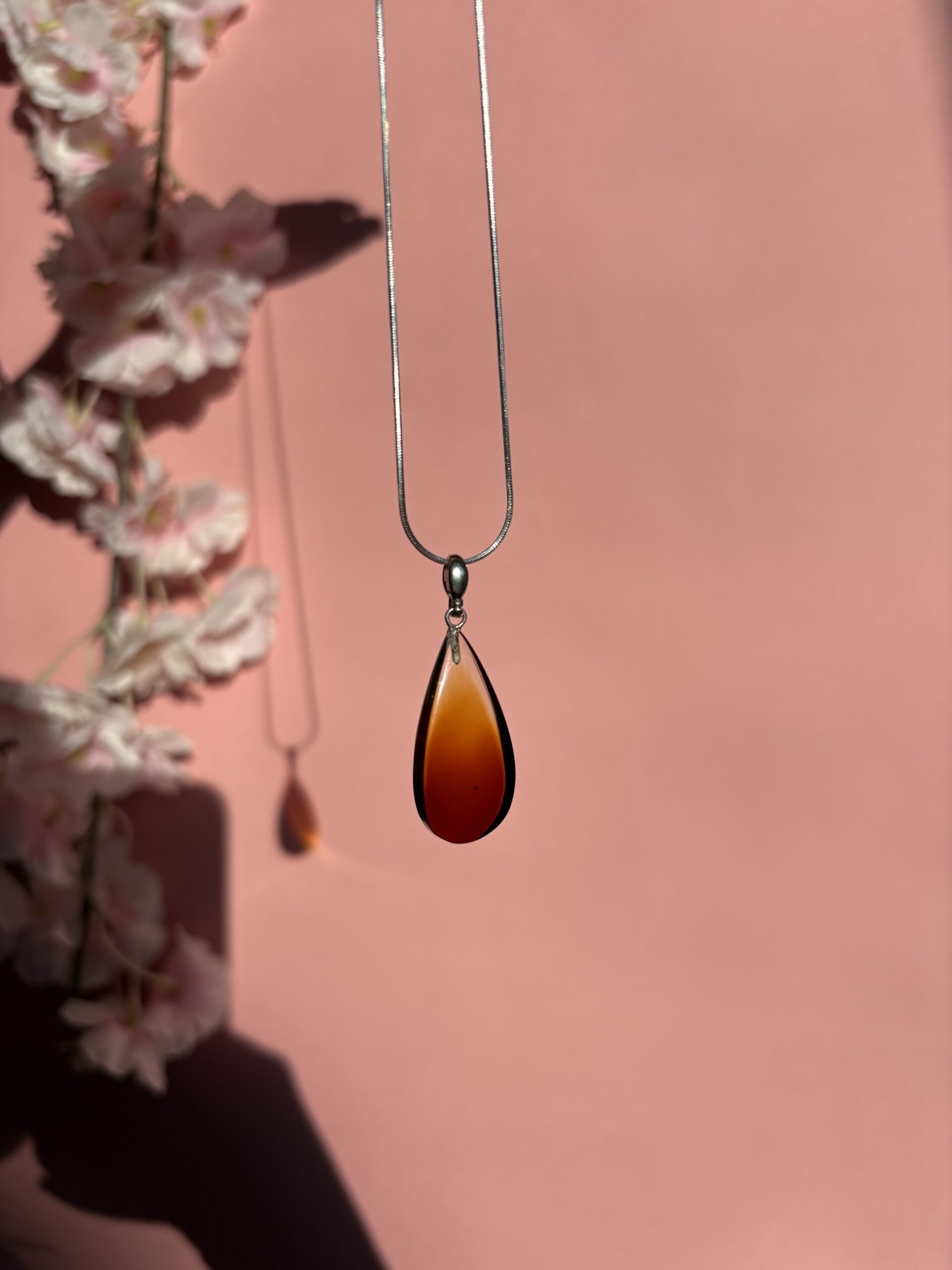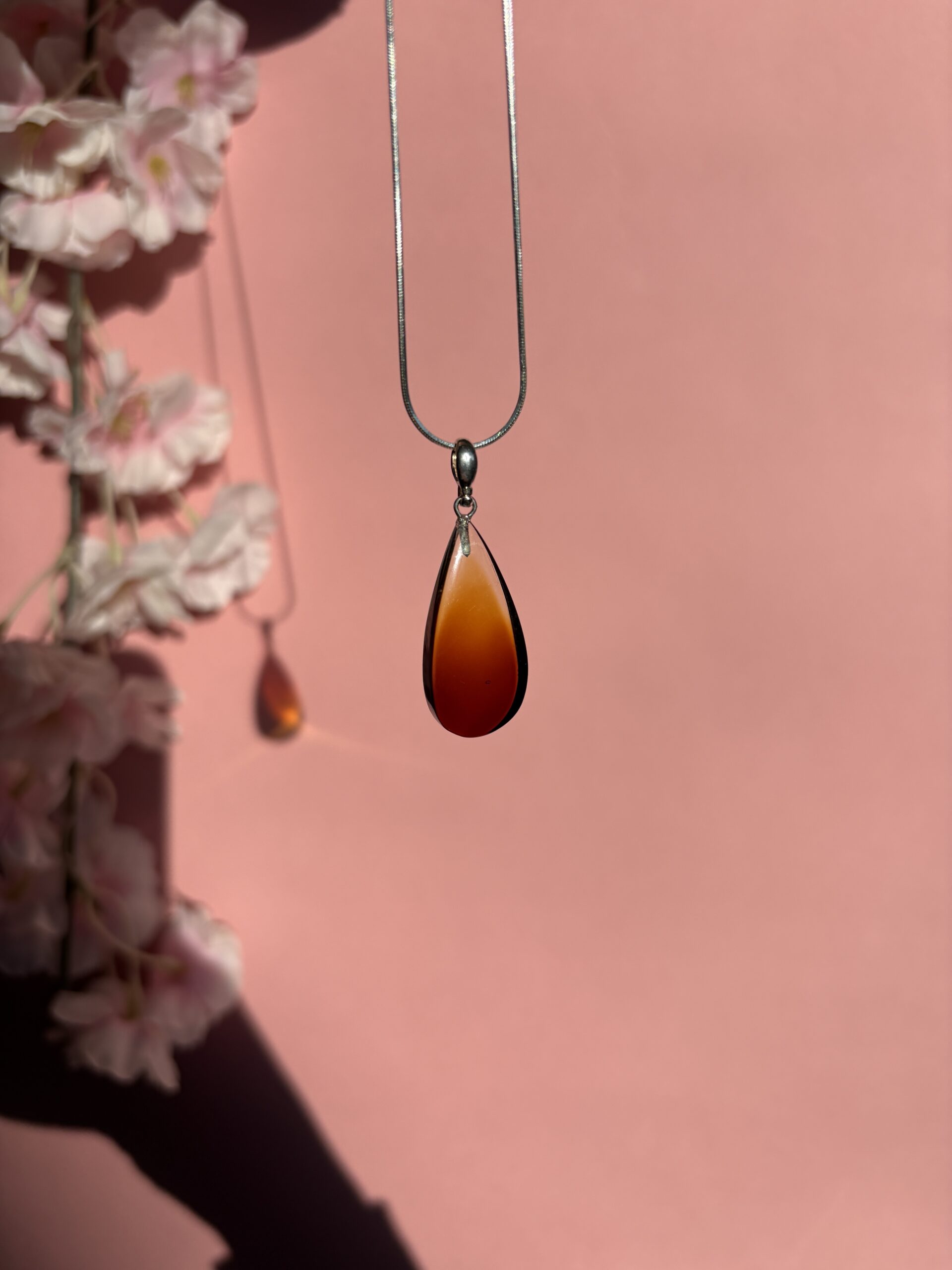 Ten wisior to połączenie jubilerskiej precyzji i ciepła tradycyjnego bursztynu. Jego najbardziej intrygującą cechą jest płynne przejście barw, które nadaje biżuterii nowoczesnego i odważnego charakteru. Od świetlistych, złocistych tonów po głęboką, nasyconą wiśnię – ten gradient sprawia, że wisior staje się centralnym punktem każdej stylizacji.