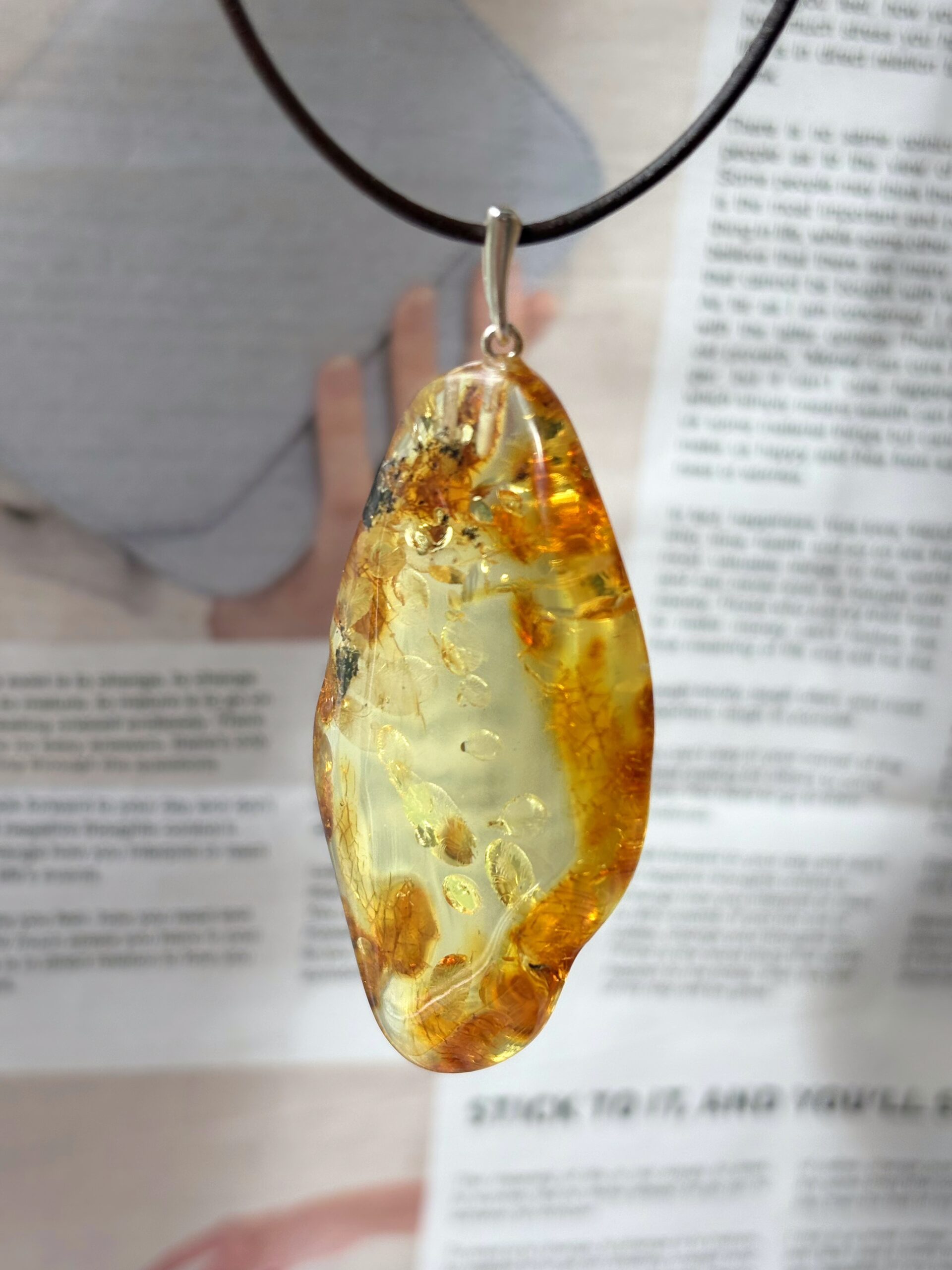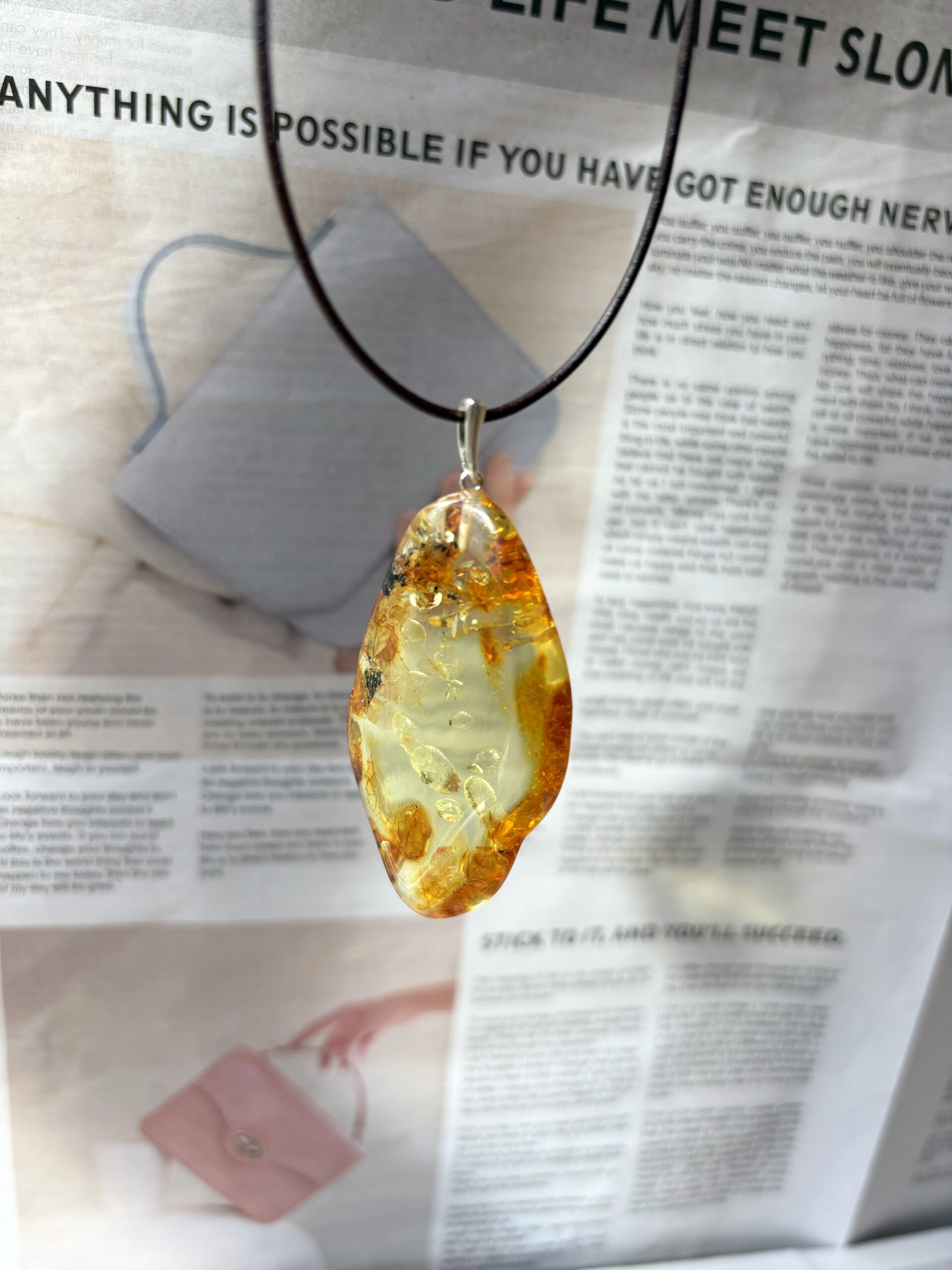 Piękny wisiorek z naturalnego bursztynu. Kamień został oszlifowany, aby wydobyć jego blask.